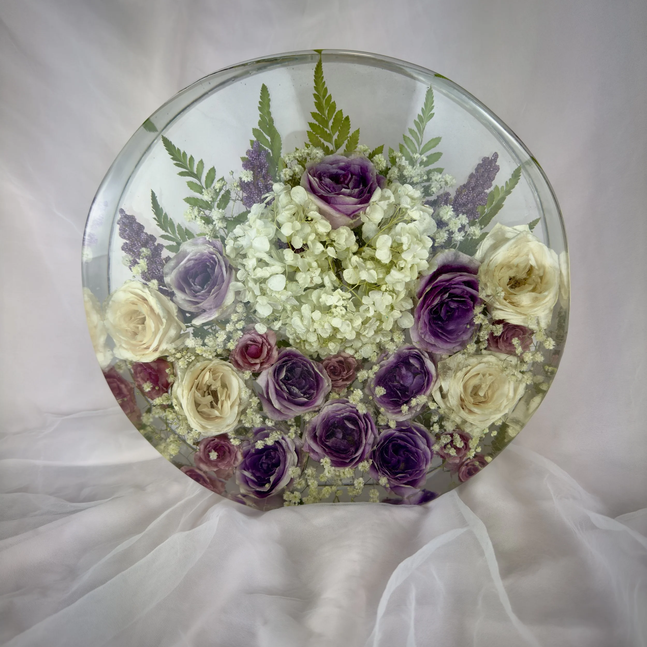 At Be My Resin, I (Natalie) understand the weight and beauty these keepsakes hold. Our name is our promise: let your memory be our reason. We don't just preserve flowers, ashes, or mementos; we honour the stories they represent. With meticulous care and artistry, we transform your most cherished items into stunning, timeless resin art that you can hold, display, and treasure for a lifetime.